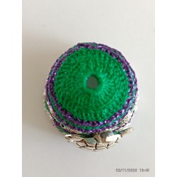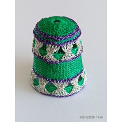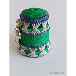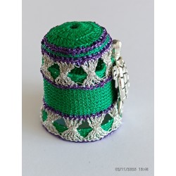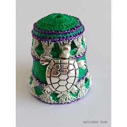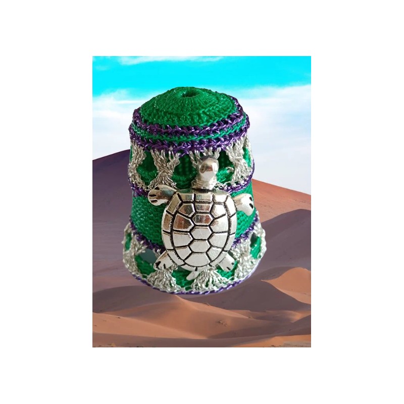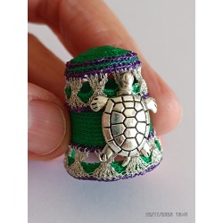 dé vert et argent avec 2 bandes argent point rideau - en façade une tortue