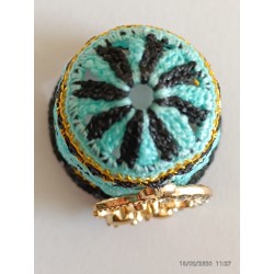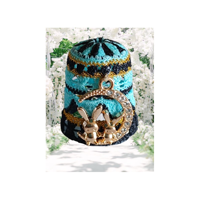 Top étoile ciel et noir - bas point rideau noir - haut bande entourée or -