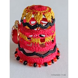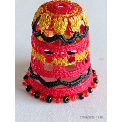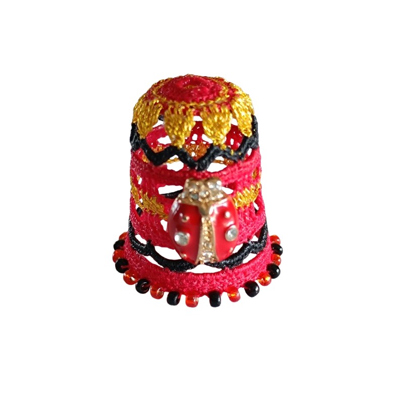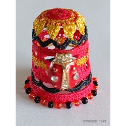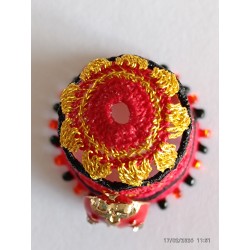 Top grosse fleur pétales or rabattus- bas perlé rouge et noir