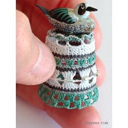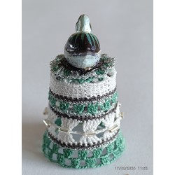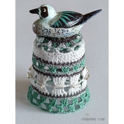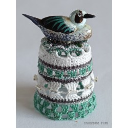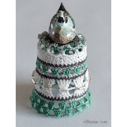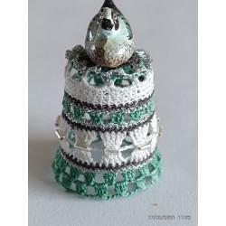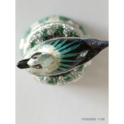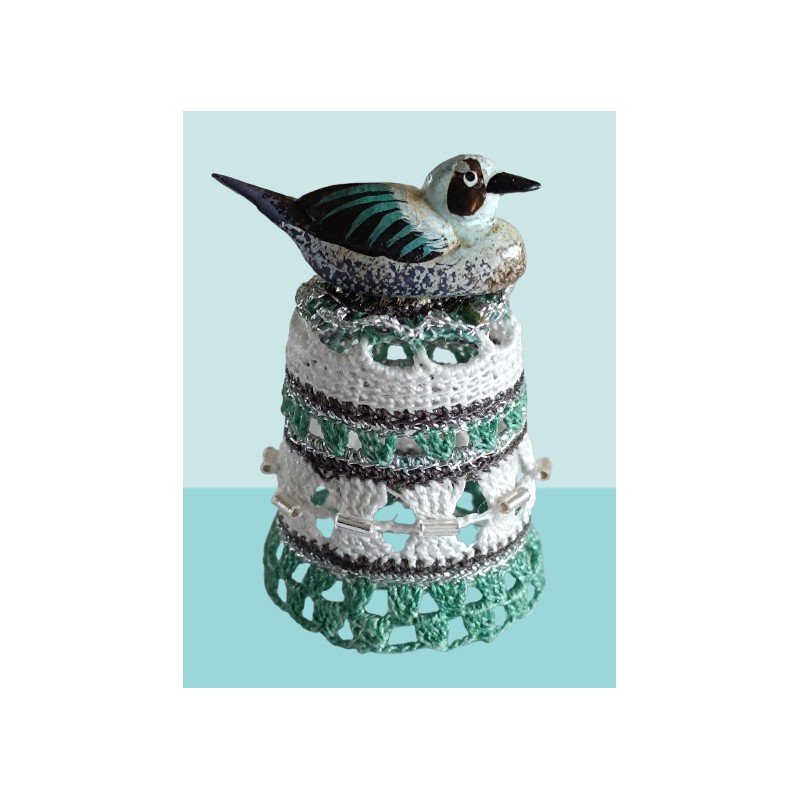 sujet en bois peint à la main - gris et verdâtre - perles argent horizontales