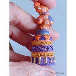 Dé à coudre violet et orange - top double rang - large bas incrusté de perles or verticales -