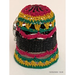 Top rayons noirs sur fonds fuchsia. Base bande bouquets de brides Or