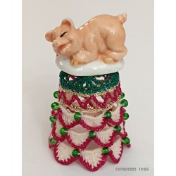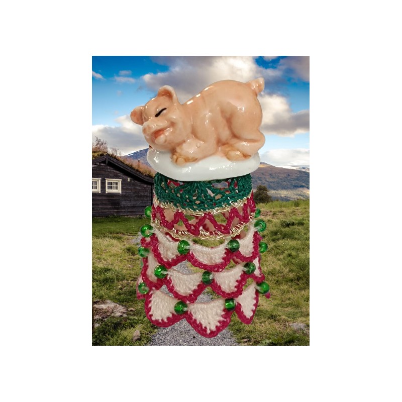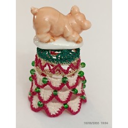 Corps du dé travaillé en vagues 2 roses - perlé vert aux jonctions -