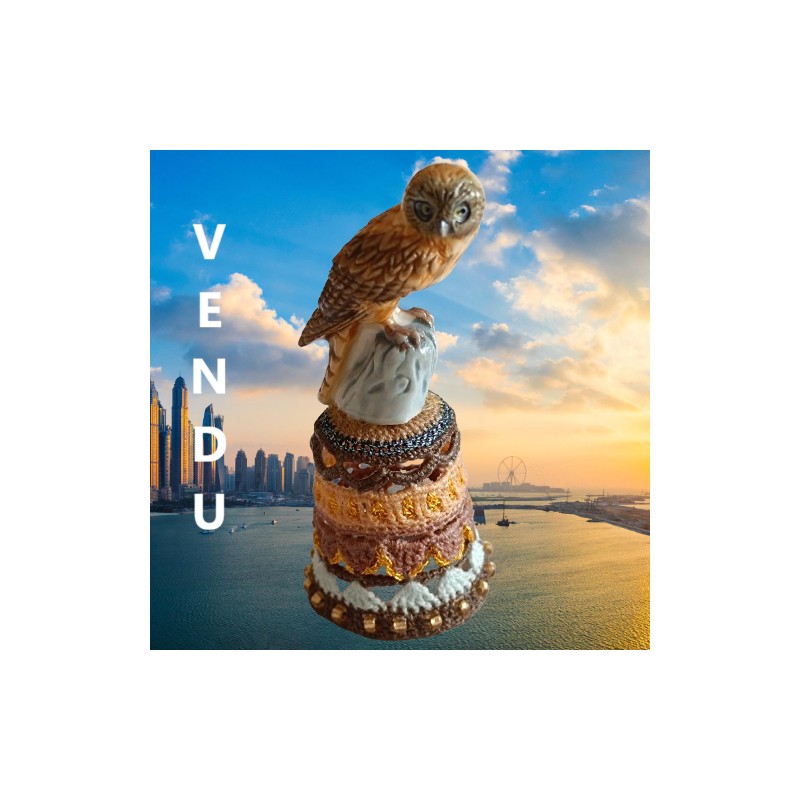 Dé de collection chouette sur tronc ciel