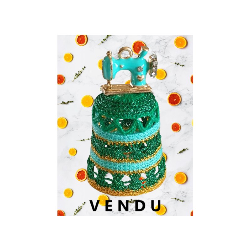 Dé vert et sa machine à coudre Vert d'eau