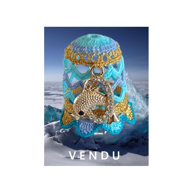 Corps très ajouré camaïeu de bleus - bas point coquille tricolore ourlé -