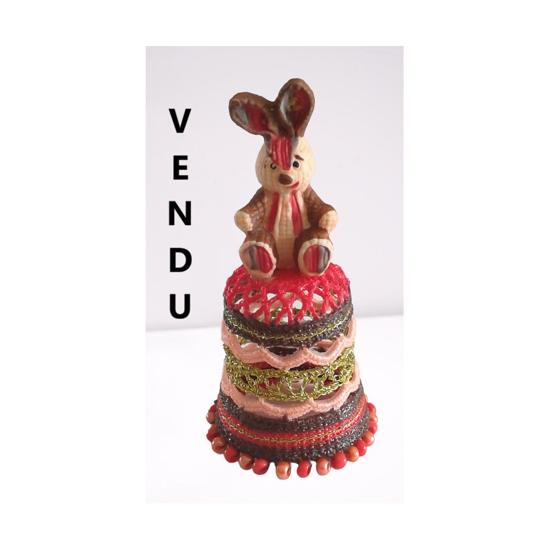 Lapin rosé et marron sur un dé aux mêmes couleurs - bas perlé -