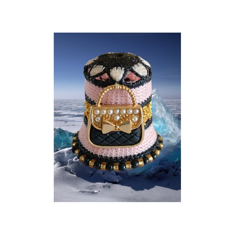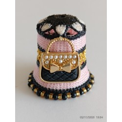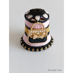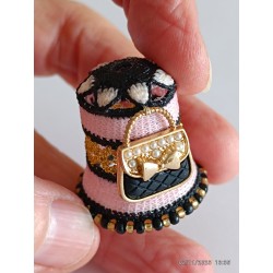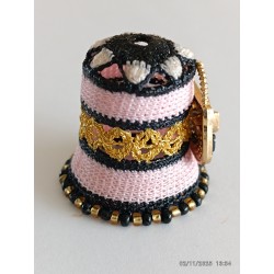 Rose noir et or - perlé bas 2 couleurs - Au centre frise dorée