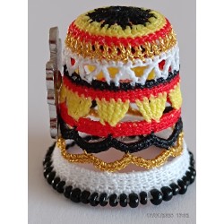 Top ajouré noir- haut jaune rouge et argent - bas perlé noir sur bande blanche